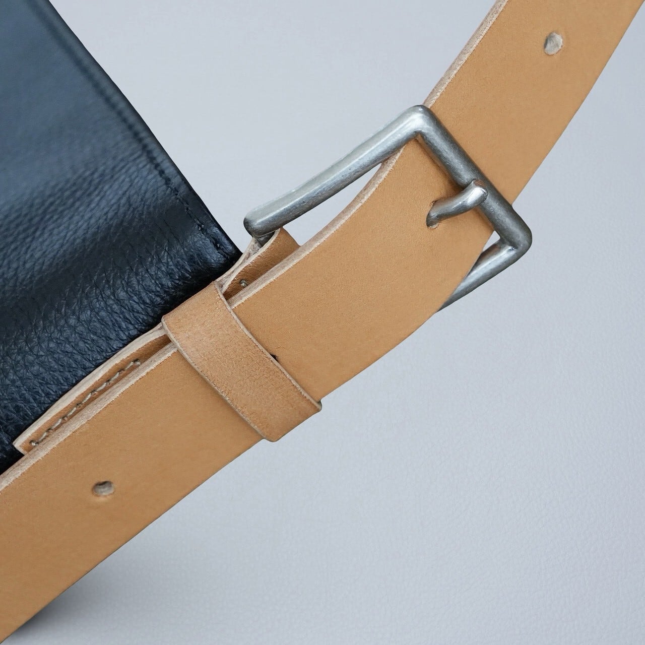 姫路のタンナーにて植物性の渋で鞣した丈夫なヌメ革にオイルを染み込ませたレザー。