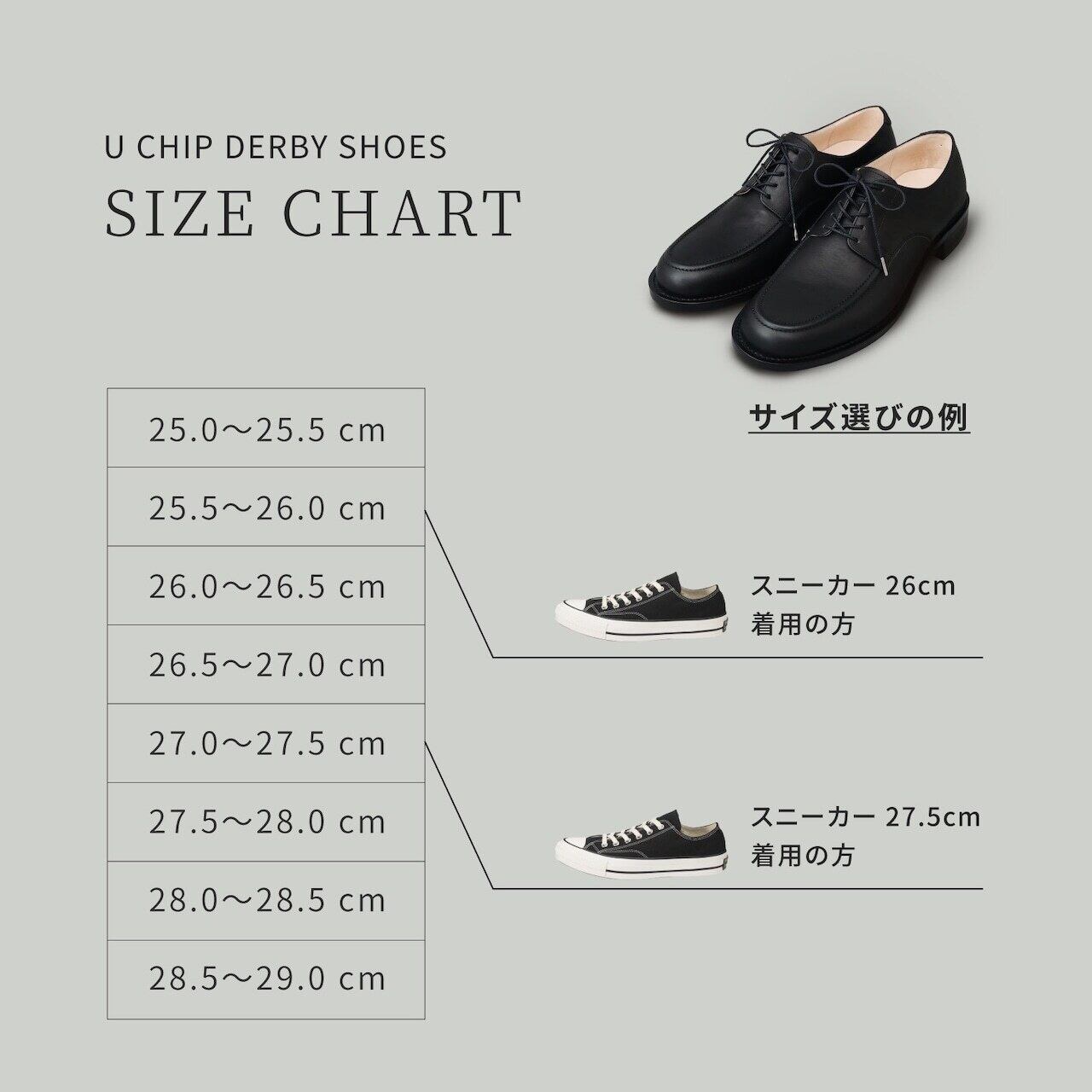 アメリカ海軍のサービスシューズをベースに、日本人の足に合わせた新木型を採用したUチップのダービーシューズ。